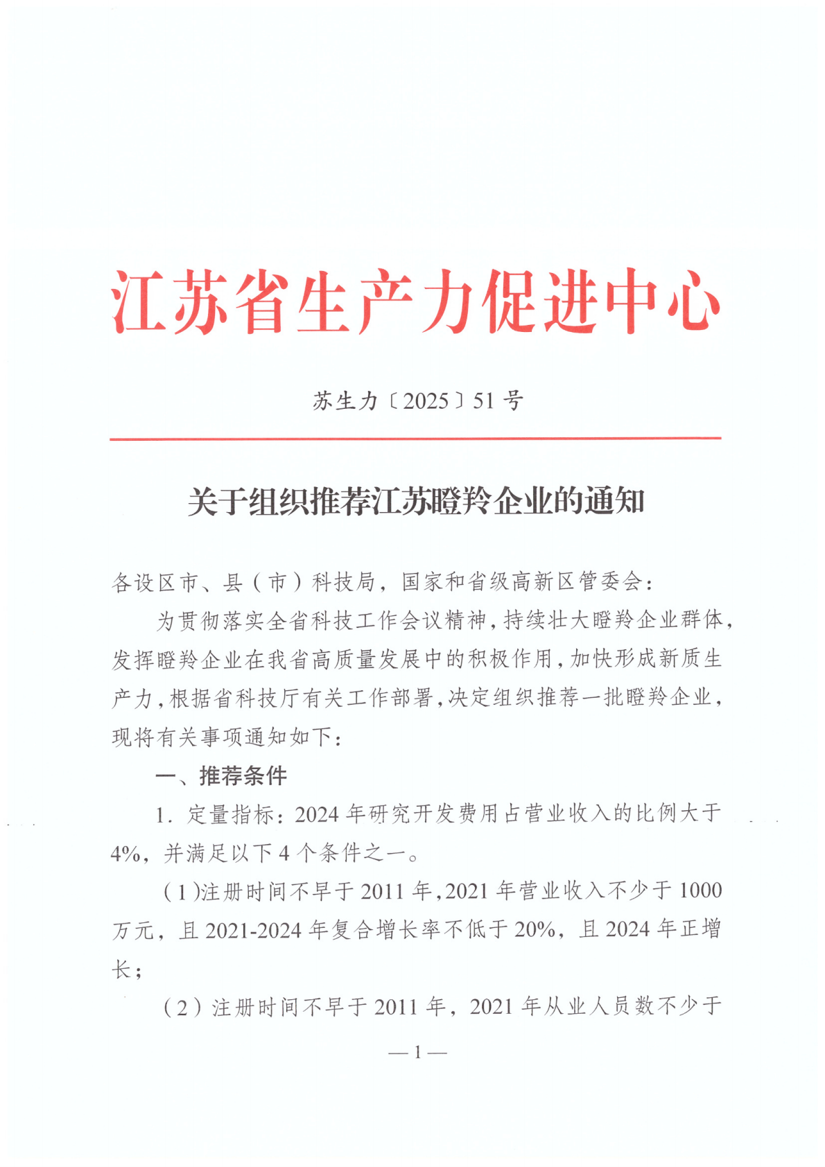 关于组织推荐江苏瞪羚企业的通知
