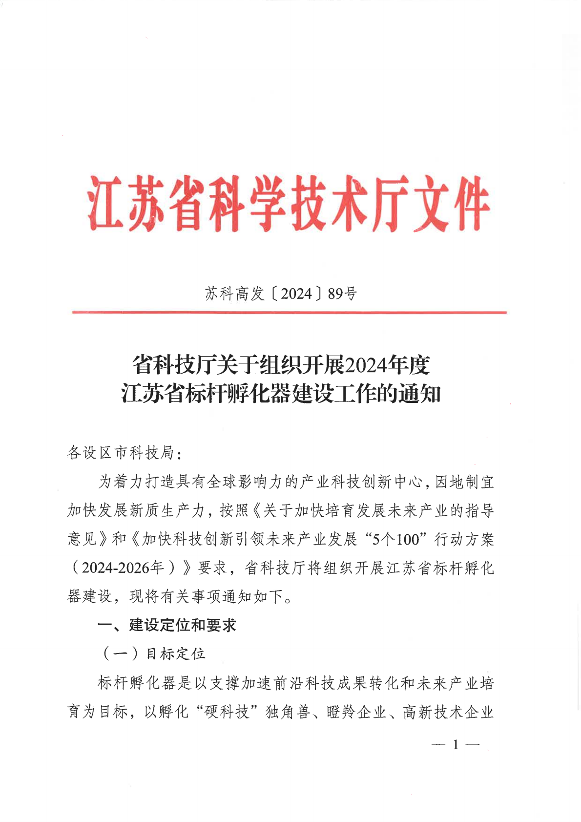 关于组织开展2025年度江苏省标杆孵化器建设工作的通知